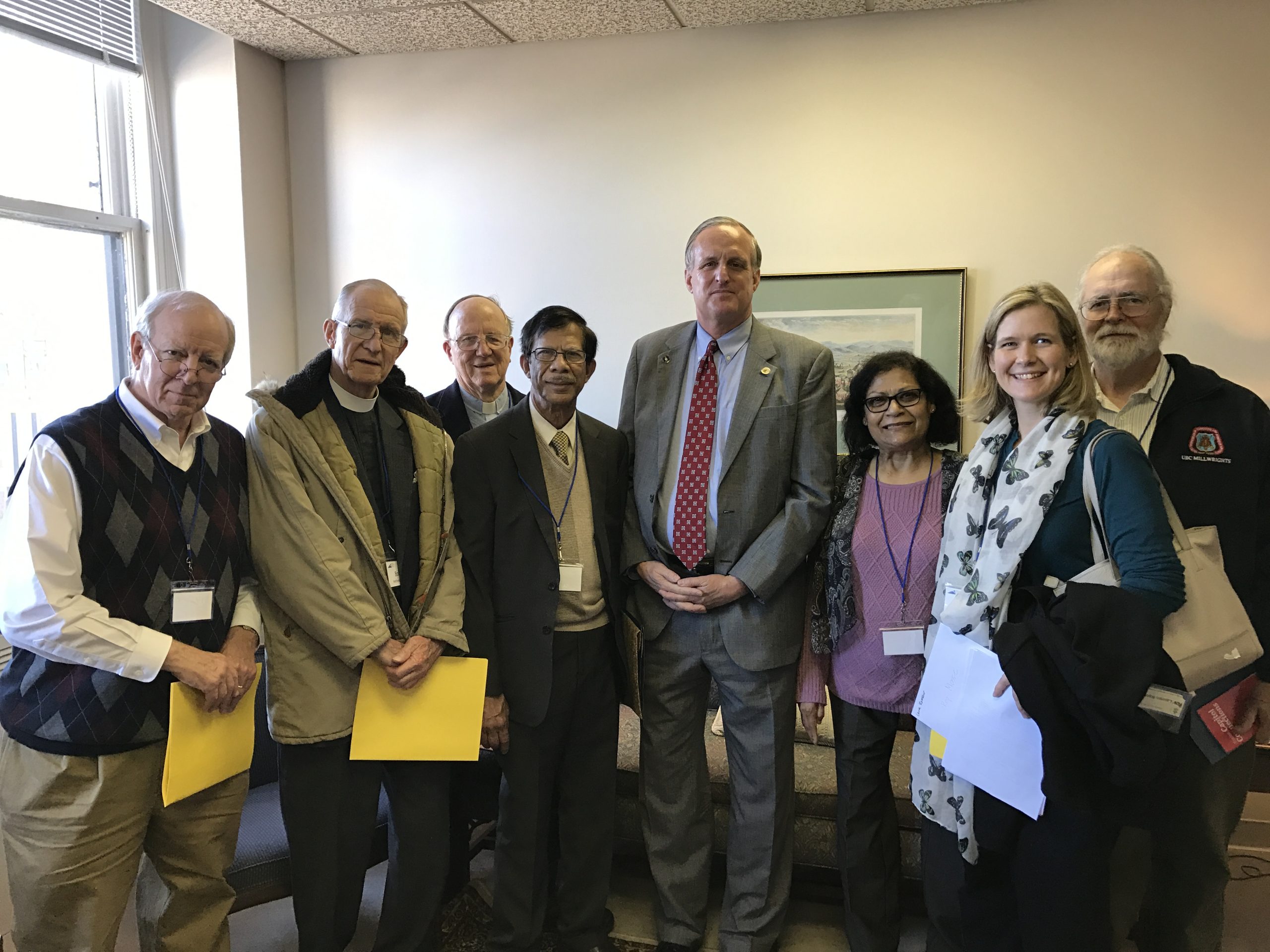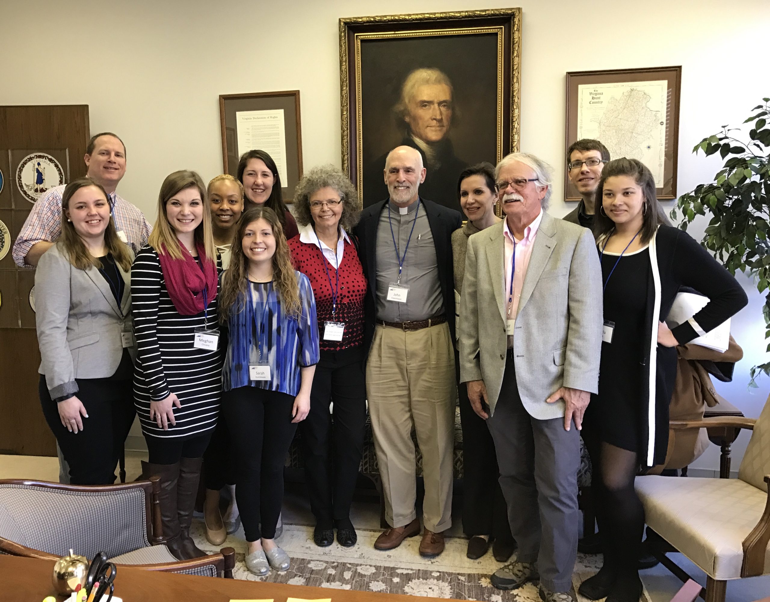 Nancy Craft delivers VICPP position papers to Dustin Rinehart, legislative aide to Del. Barry Knight.
