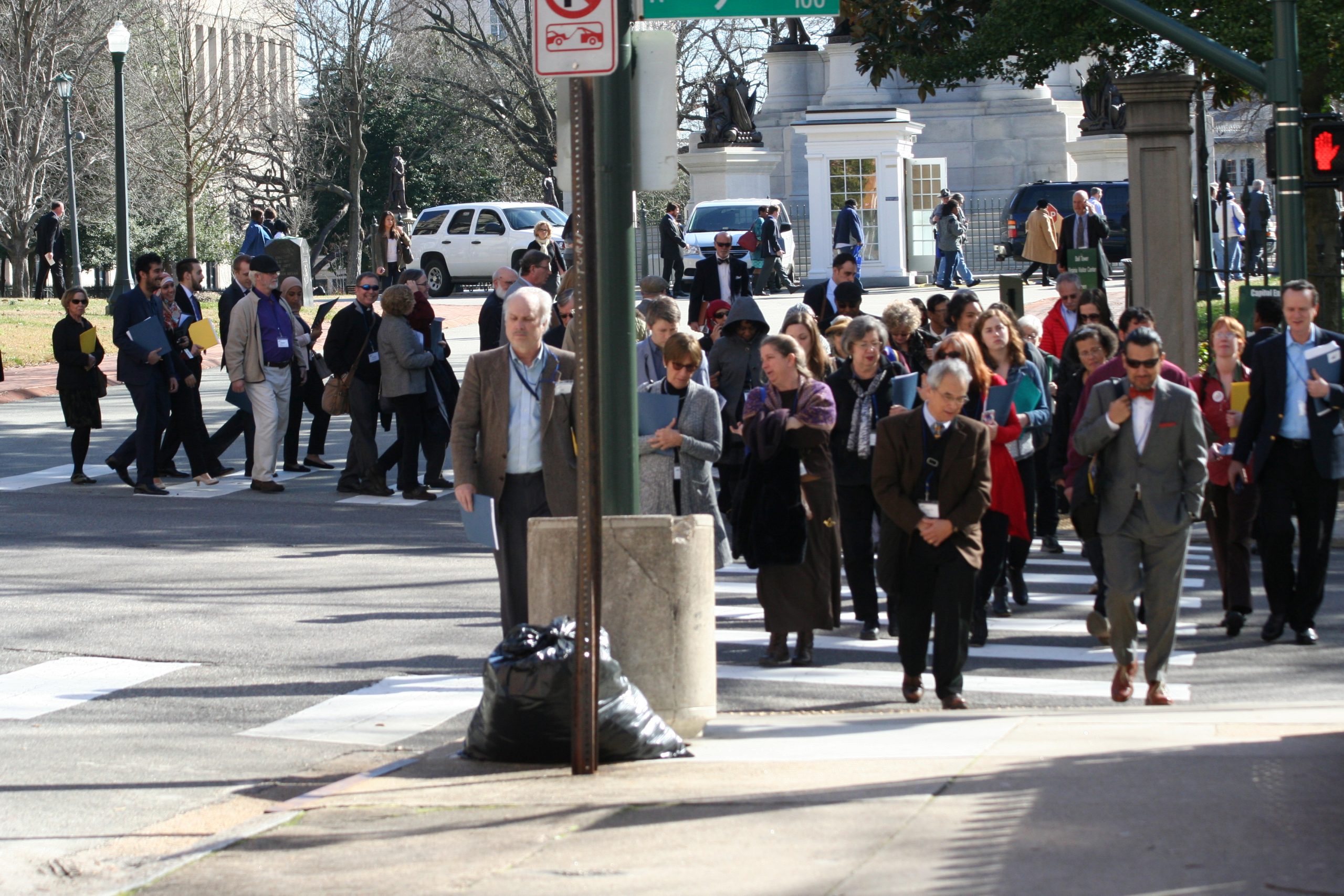 A large group of Day For All People participants heads back to the church from Capitol Square.